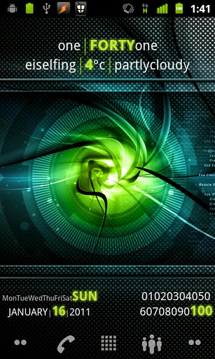 It can be configured to display time, date, battery and weather information. The layout of the widget is highly customizable through the layout editor.